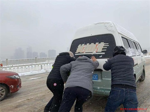 我司董事長(zhǎng)喻天勝同志、總經(jīng)理曾凡龍同志、副總經(jīng)理李建云同志帶頭上陣,迅速行動(dòng),大清早便來(lái)到路上,直到十二點(diǎn)江城大道、墨水湖橋已暢通無(wú)阻才離開一線。期間三位領(lǐng)導(dǎo)一直堅(jiān)守在融雪現(xiàn)場(chǎng),親自揮舞鐵鍬鏟除積雪,在天寒地凍的現(xiàn)場(chǎng)幫助推行過(guò)路的熄火私家車,既幫助受困車輛,又消除其他后行車輛的安全隱患。